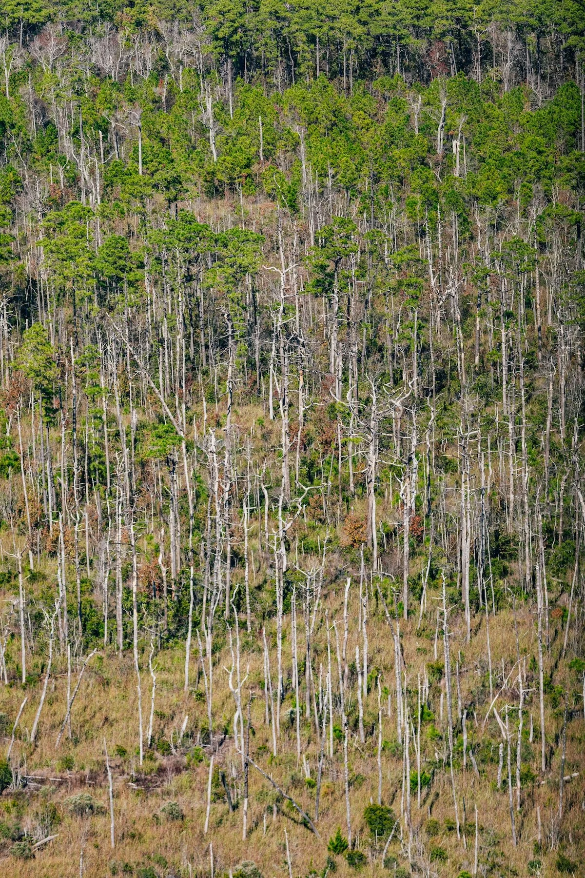As saltwater moves in, the trees can no longer survive, leaving behind stands of dead, gray trunks and stumps.